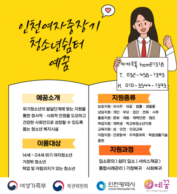 인천광역시 여자중장기청소년쉼터 예꿈 홍보포스터